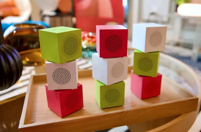 This small, cube-shaped speaker is lightweight and portable, making it ideal for casual use at home. It connects via Bluetooth and offers around 9 hours of battery life, with simple controls and USB-C charging.